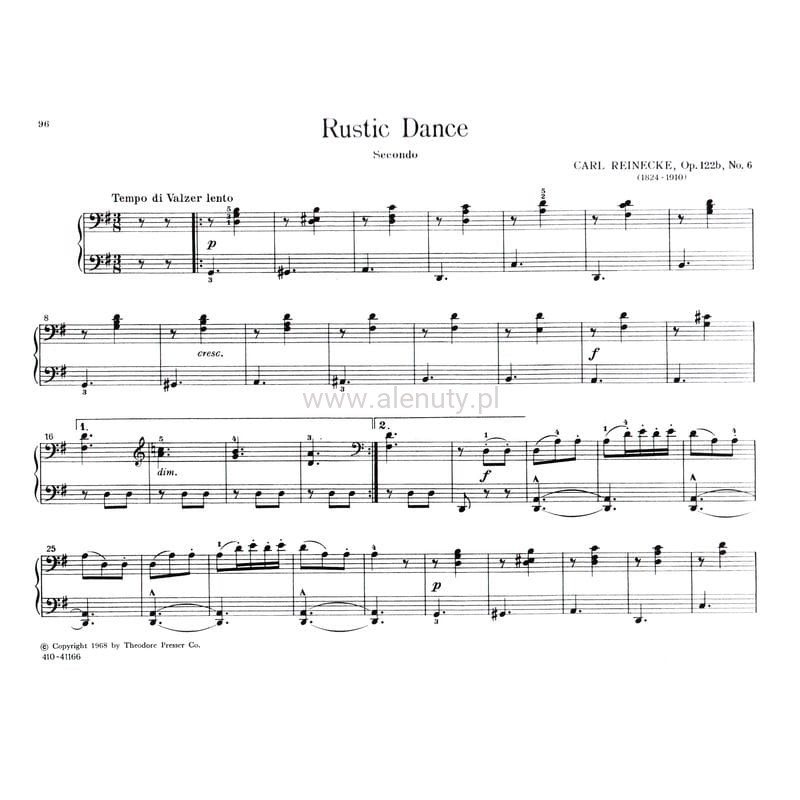 Ta kolekcja zawiera zbiór prostych utworów zaaranżowanych na 4 ręce ułożonych w sposób progresywny. Dostępne utwory reprezentują repertuar różnych kompozytorów, w tym Beethovena, Brahmsa, Czernego, Debussy'ego, Faure, Schuberta, Strawińskiego i wielu innych. Każdy kawałek jest w oryginalnej formie. Reprezentowane są sonaty, wariacje, tańce (walce, menuety, polki).