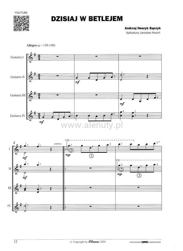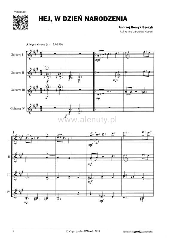 Tytuł: 6 kolęd na kwartet gitarowy