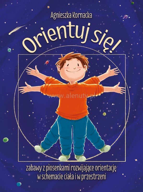 Żeby dziecko czuło się komfortowo w otaczającym je świecie, musi znać swoje ciało i jego możliwości oraz dobrze orientować się w przestrzeni. To pomaga zarówno we wszystkich czynnościach dnia codziennego (od ubierania i mycia się, poprzez chodzenie, bieganie, jedzenie, aż po zabawę), jak i w nauce takich czynności, jak rysowanie, pisanie, czytanie czy chociażby opisywanie, co widać wokół lub na obrazku. Dzieci najlepiej poznają części ciała, rozwijają świadomość własnego ciała i poznają najbliższą przestrzeń poprzez ruch i dotyk. Ruch ułatwia im też uczenie się takich określeń, jak: nad, przed, obok, za, na, pod, dookoła, góra, dół, mały, duży, wysoko, nisko itp. Wspomaga także opanowanie pojęć lewy i prawy, co wielu dzieciom sprawia sporą trudność. W skład publikacji wchodzi książeczka zawierająca opisy ćwiczeń oraz 2 płyty CD z 16 piosenkami i podkładami muzycznymi do nich. Mogą z niej z powodzeniem korzystać nauczyciele oraz rodzice. Przeznaczona jest przede wszystkim do pracy z dziećmi w wieku przedszkolnym (część zabaw nadaje się także dla dzieci ze starszych grup żłobkowych), ale warto również proponować ją młodszym uczniom oraz tym dzieciom, których rozwój jest zaburzony bądź spowolniony. Całość została skonstruowana tak, że wraz z każdą kolejną zabawą zwiększa się poziom trudności.
