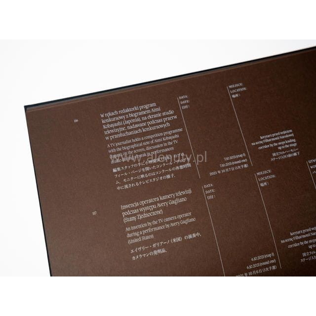 To niecodzienna dokumentacja niezwykle emocjonalnych momentów uchwyconych za kulisami Konkursu Chopinowskiego, w Filharmonii Narodowej w 2021 roku. Album składa się z sekcji czarno-białych, w większości nieopublikowanych dotąd kadrów oraz ich szczegółowych opisów.