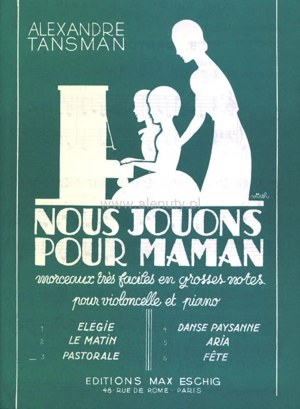 Kompozycja polskiego kompozytora Aleksandra Tansmana (1897-1986) przeznaczona dla dzieci. Utwór ze zbiorku Gramy dla mamy na wiolonczelę i fortepian. Duże nuty dla początkujących zarówno partia wiolonczeli jak i partia fortepianu. Tytuł oryginalny: Nous jouons pour Maman - morceaux tres faciles en grosses notes pour violoncelle & piano.