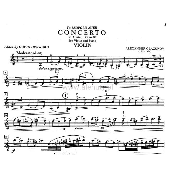Aleksandr Głazunow (Glazunov): Concert in A minor op. 82 for Violin and Piano - Dawid Ojstrach - koncert skrzypcowy a-moll - nuty na skrzypce i fortepian