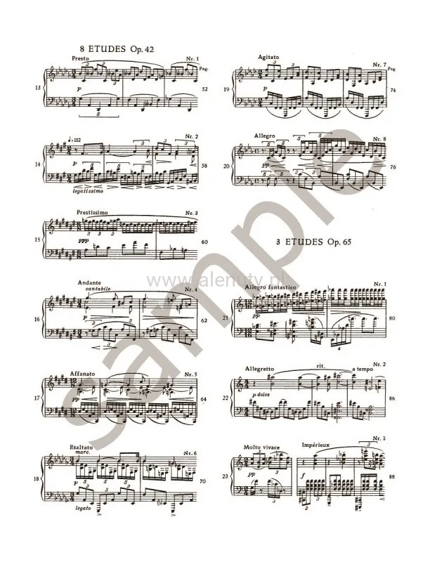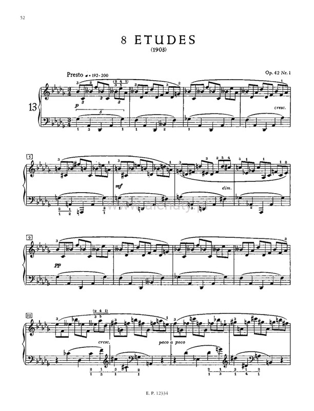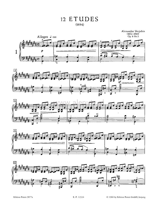 Alexander Scriabin composed sets of Études throughout his life in all periods of his compositional development. These pieces push the technical limits while finding new musical and poetic vistas. This edition of the sets of Études Opp. 8, 42 and 65 has been prepared by Günter Philipp. It contains an authorative text of the notation, preface in German and English, and a critical commentary.