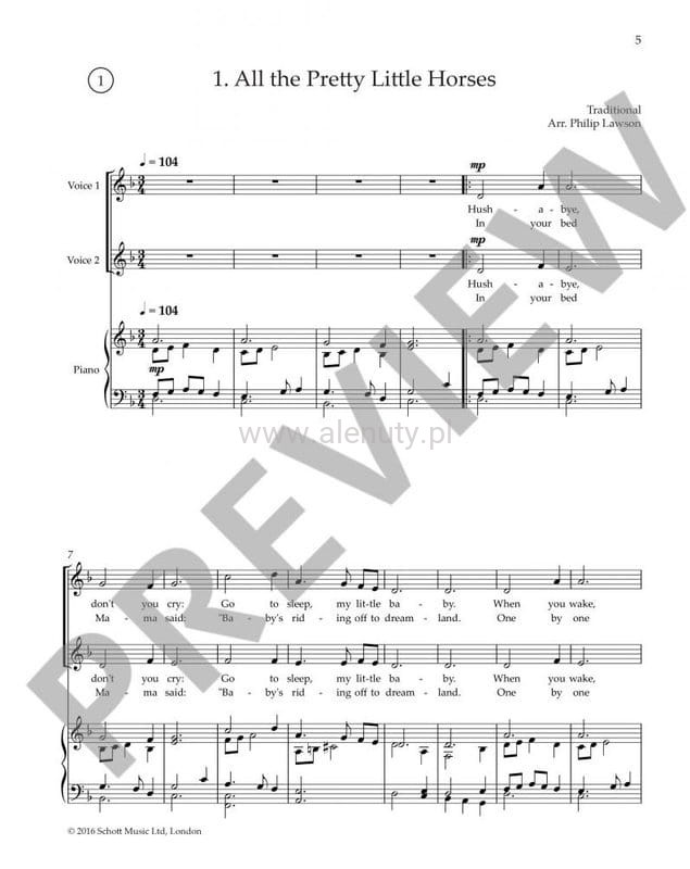 American Folk Songs to kolekcja 20 aranżacji na 1 lub 2 głosy i fortepian. Wydanie zawiera różnorodne tradycyjne pieśni wraz z nagraniami dołączonymi na płycie CD. Niemieckie i francuskie tłumaczenia wstępu są dostępne do pobrania w formacie pdf. Nuty przeznaczone dla średnio zaawansowanych i zaawansowanych muzyków.