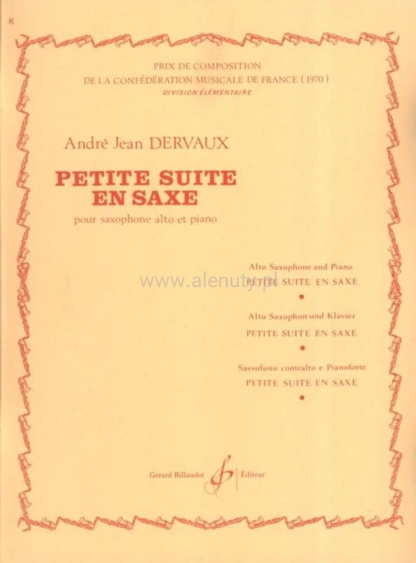 Andre Jean Dervaux: Petite suite en saxe pour saxophone alto et piano - nuty na saksofon altowy i fortepian