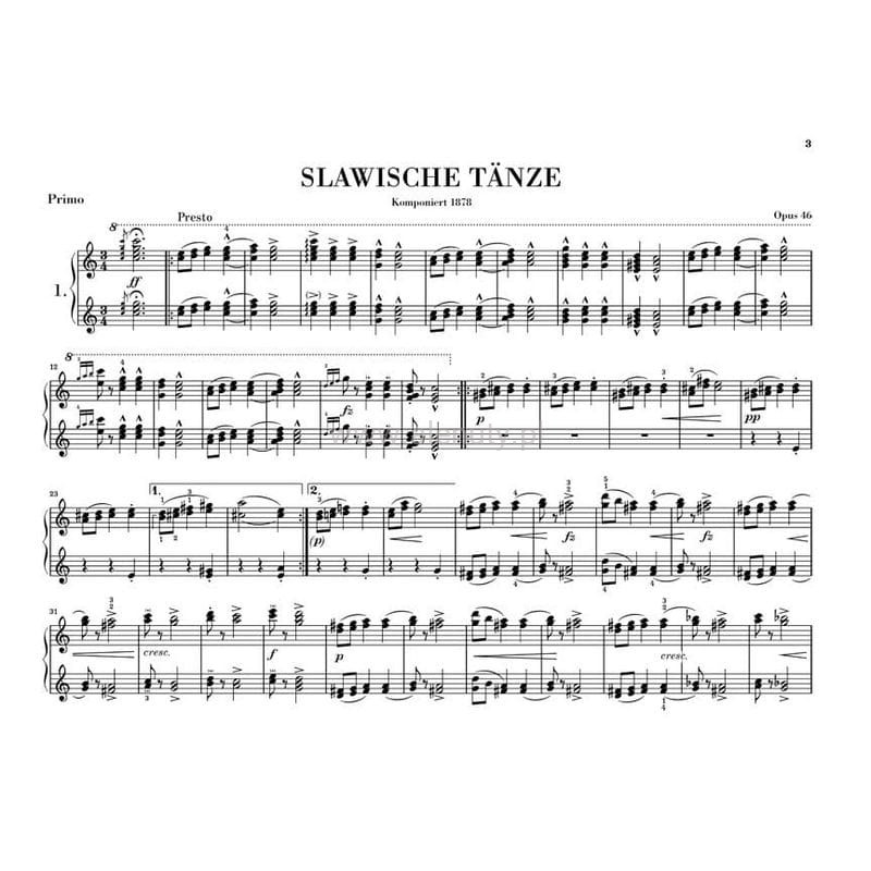 Tytuł: Slavonic Dances op. 46 for Piano Four-hands (Slawische Tänze op. 46 für Klavier zu vier Händen)