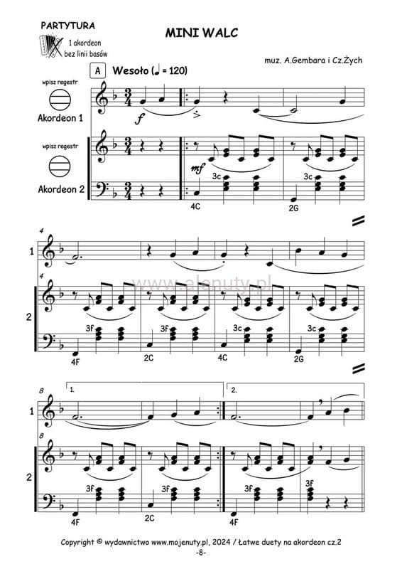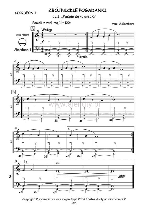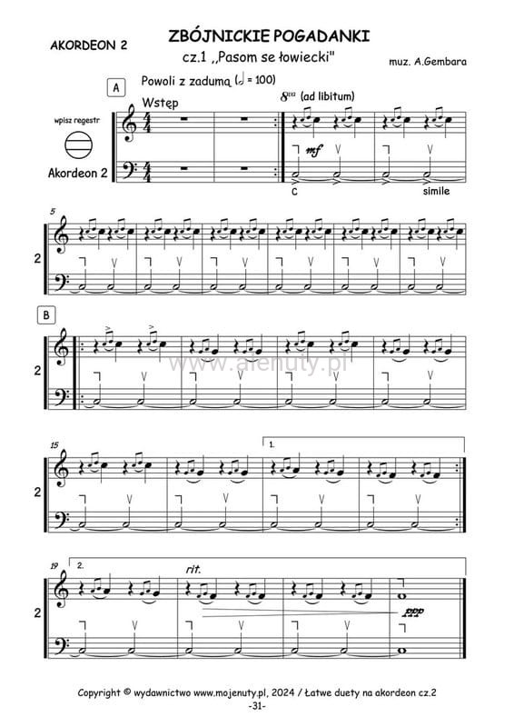 Arkadiusz Gembara: Łatwe duety na akordeon cz. 2 - nuty na dwa akordeony