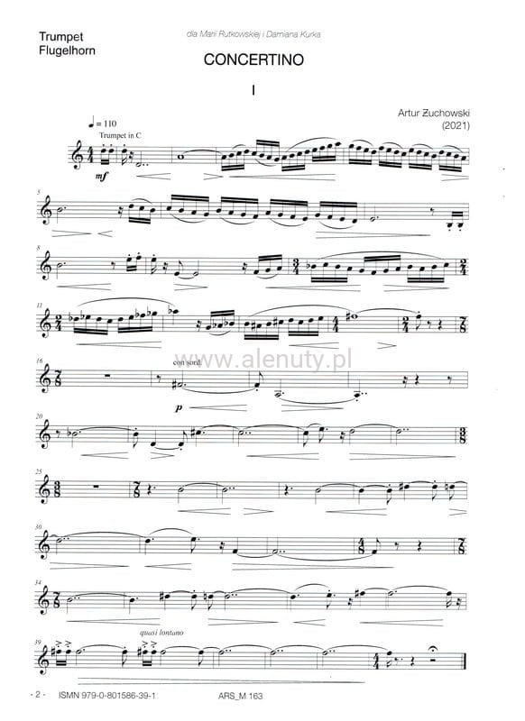 Artur Żuchowski: Concertino - nuty na trąbkę oraz flugelhorn i fortepian