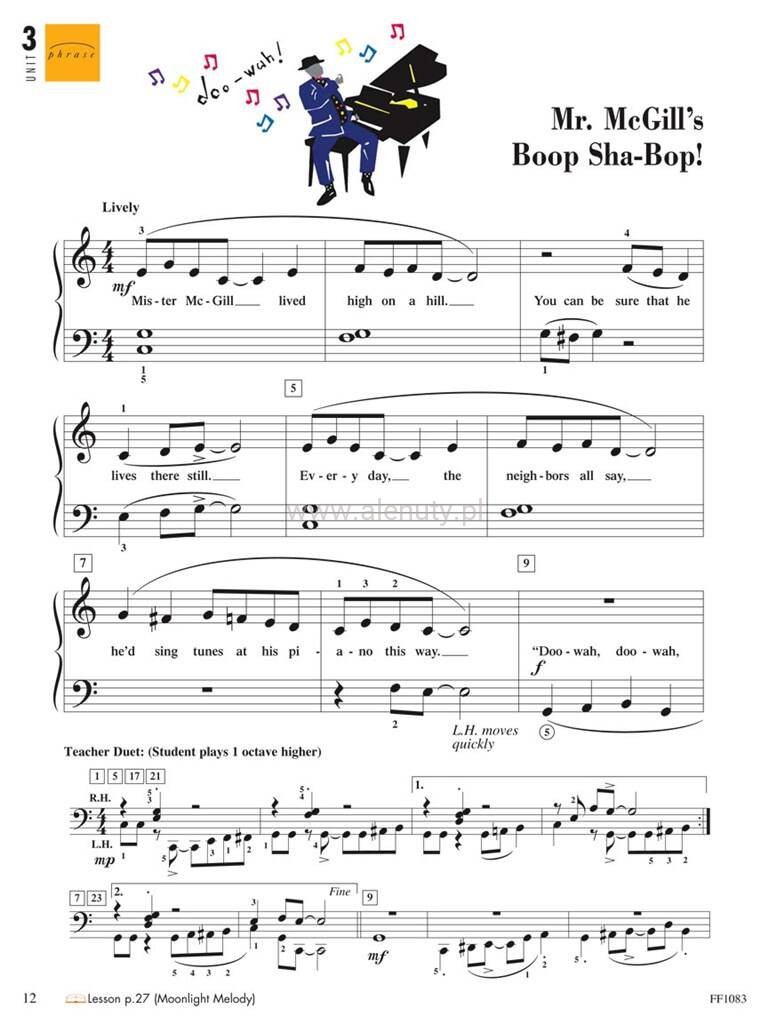 Publikacja Basic Piano Adventures Level 2A Performance Book to kolekcja 16 skutecznych utworów do nauki gry na fortepianie, które wzmacniają koncepcje przedstawione w podręcznikach Primer Lesson i Theory Books. Fantazyjne teksty, kolorowa grafika i wyrafinowane duety nauczycieli wzbogacają naukę i ułatwiają zapamiętywanie. Nuty przeznaczone dla początkujących pianistów.