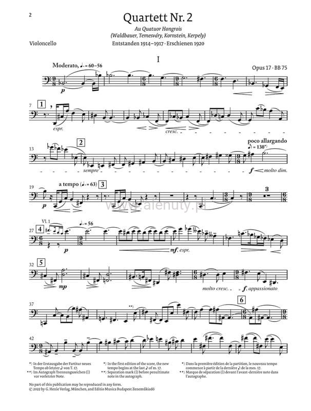 Bela Bartok: String Quartet no. 2 op. 17 - kwartet smyczkowy nr 2 - nuty na kwartet smyczkowy