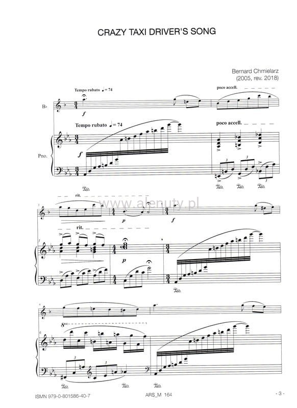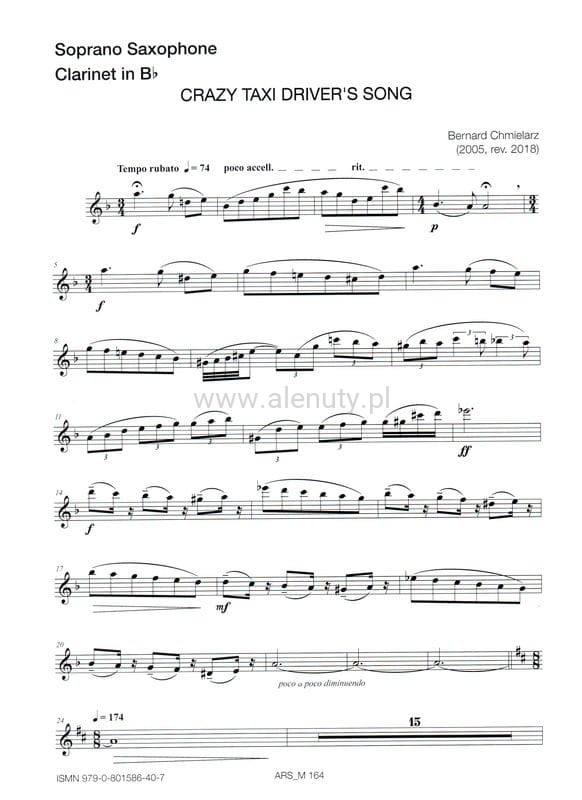 Bernard Chmielarz: Crazy Taxi Driver's Song - nuty na saksofon sopranowy lub klarnet i fortepian