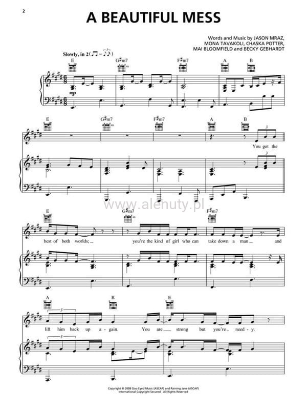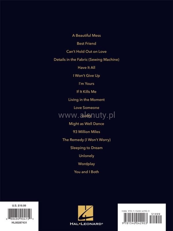 Best of Jason Mraz (PVG) - 18 piosenek - melodia, nuty na fortepian, akordy gitarowe i słowa