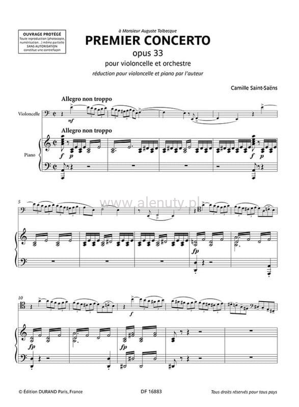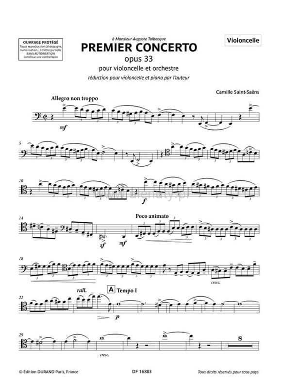 The first performance of the Concerto opus 33, in the orchestral version, took place on January 19, 1873, at the “Société des concerts du Conservatoire” in Paris. In this Concerto the cello takes the situation in hand from the very first measure, with an authoritative theme whose opening, in slightly modified form, will return over and over again, establishing itself as an element that, in its way, gives the concerto the allure of a cyclical work. Saint-Saëns takes advantage of all of the instrument’s resources, in all of its registers, while exploiting the use of harmonics to the fullest. Historical introduction and editorial notes in French and English by Edmond Lemaître. – New engraving.