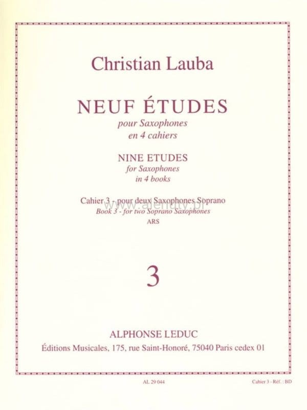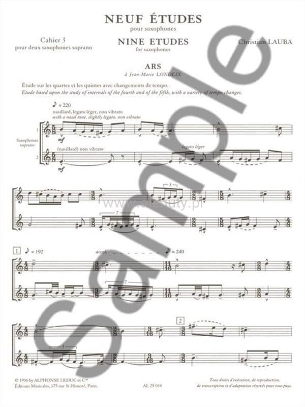 Christian Lauba: Neuf Etudes Pour Saxophones - Cahier 3 pour deux Saxophone Soprano - etiudy - nuty na duet saksofonów sopranowych