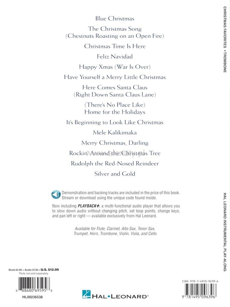 Publikacja zawiera kolekcję najbardziej znanych kolęd i piosenek świątecznych w opracowaniu na puzon. Wydanie obejmuje 14 najpiękniejszych utworów okresu Bożego Narodzenia w prostym opracowaniu. Książka jest częścią kultowej serii 'Instrumental Play-Along'. Nuty przeznaczone dla początkujących.