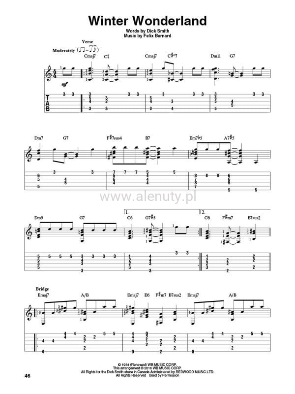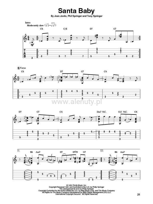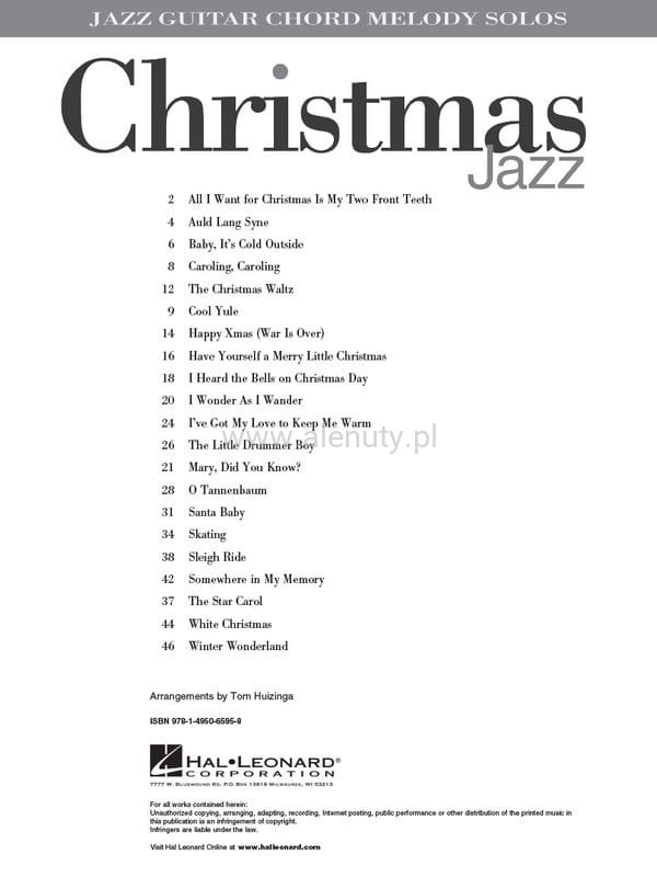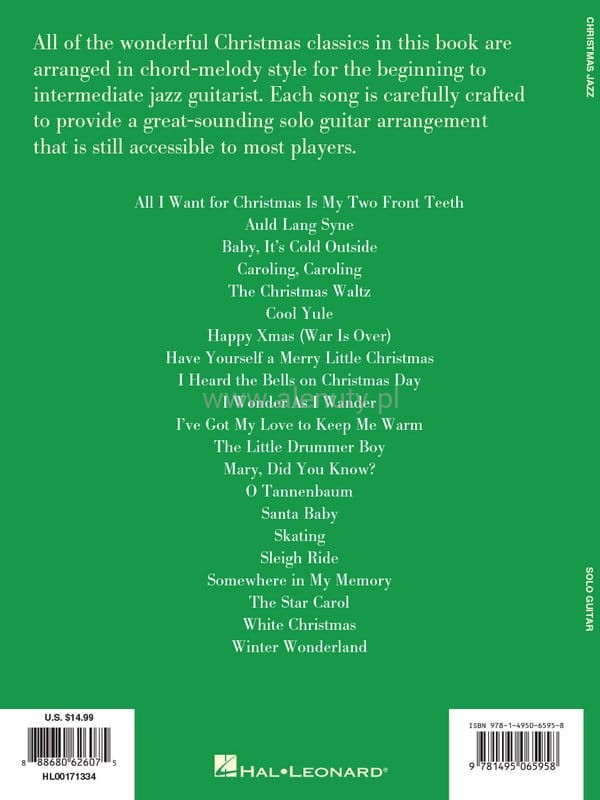 All of the wonderful Christmas classics in this book are arranged in chord-melody style for the beginning to intermediate jazz guitarist in standard notation and tablature. Each song is carefully crafted to provide a great-sounding solo guitar arrangement that is still accessible to most players. 21 songs include: Auld Lang Syne · Baby, It's Cold Outside · Cool Yule · Have Yourself a Merry Little Christmas · I've Got My Love to Keep Me Warm · Mary, Did You Know? · Santa Baby · Sleigh Ride · White Christmas · Winter Wonderland · and more.