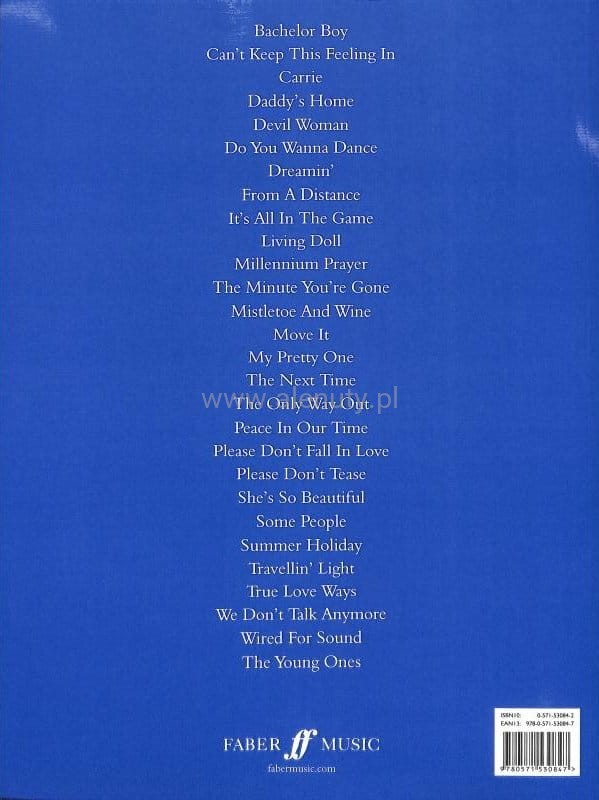 Publikacja zawiera największe przeboje Cliffa Richarda zaaranżowane na fortepian, wokal i gitarę. Wydanie obejmuje między innymi utwory: Millennium Prayer, Living Doll i From A Distance. Wydania oznaczone jako PVG (Piano Vocal Guitar - Fortepian Melodia Gitara) zawierają zapis nutowy linii melodycznej, nuty na fortepian, akordy gitarowe oraz słowa do piosenek zamieszczonych w publikacji. Więcej o nutach PVG przeczytasz >>> w artykule
