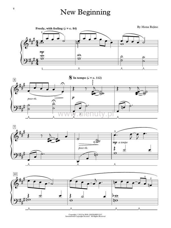 "Composer Showcase: Mona Rejino - Reflections & Relaxations" to nie tylko zbiór nut, ale przede wszystkim zaproszenie do podróży przez świat emocji i refleksji, które można odkryć poprzez muzykę. To wyjątkowa propozycja dla każdego, kto szuka spokoju, inspiracji i piękna w świecie fortepianowej interpretacji.