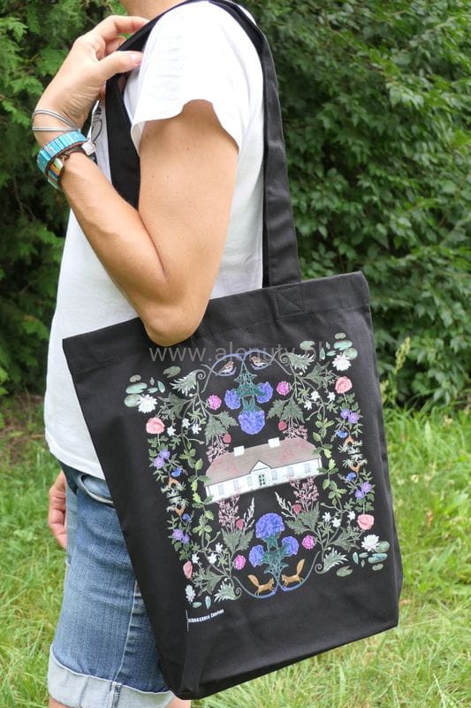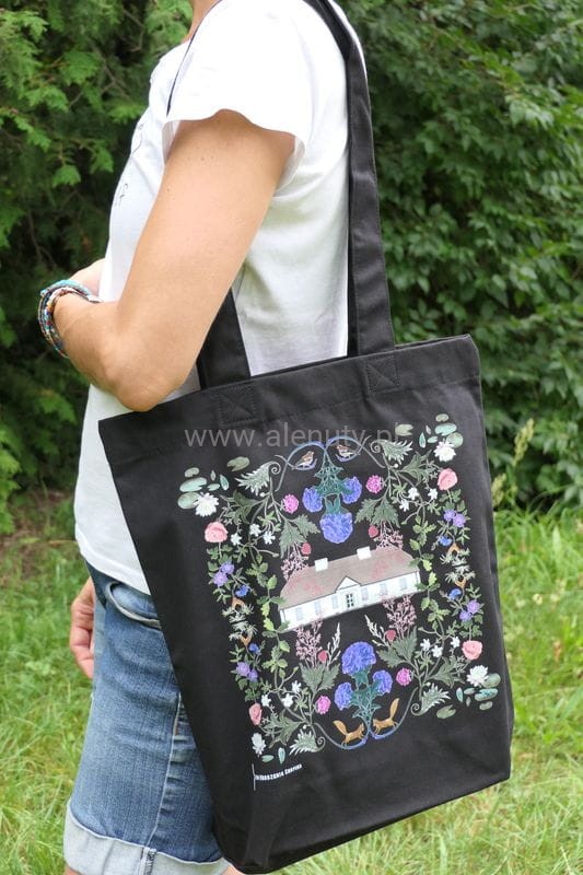Piękna, czarna, bawełniana torba z kolekcji "Dom Urodzenia Fryderyka Chopina", która ma przybliżyć klimat Żelazowej Woli - dworku oraz otaczającego go pięknego parku, w którym przez cały rok gra muzyka. Zaprojektowana z myślą o miłośnikach muzyki i historii, stanowi wyjątkowy gadżet dla miłośników Chopina. Wykonana z wysokiej jakości bawełny, zapewnia trwałość i wygodę użytkowania, idealną na codzienne zakupy czy podróże. Torba posiada długi uchwyt na ramię.