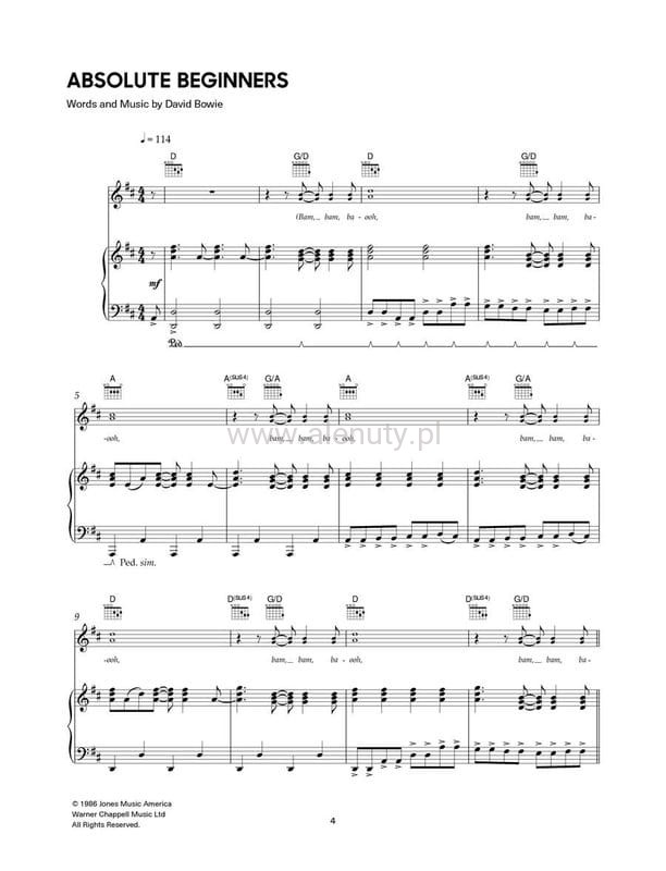 David Bowie: Hits - ponad 40 piosenek - nuty na fortepian, melodia, akordy gitarowe i słowa