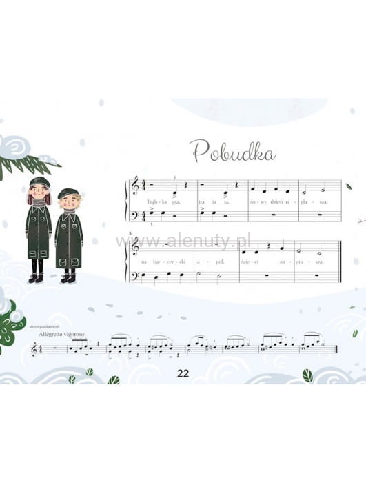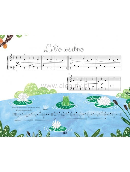 Wędrówki po klawiaturze, to wdzięczny materiał do nauczania domowego gry na fortepianie lub innym instrumencie klawiszowym. Autorka wprowadza dzieci w świat muzyki w sposób naturalny, przyjazny (stosuje melorecytacje, wierszyki), korzystając z metody beznutowej. Publikacja przedstawia drugą część tego podręcznika, który prezentacji materiał dostosowany jest do możliwości percepcyjnych najmłodszych i zawiera proste piosenki w zapisie nutowym na pięciolinii. Prostym melodiom przeznaczonym dla ucznia towarzyszy urozmaicony, a zarazem nieskomplikowany akompaniament nauczyciela. Gra w duecie dostarcza pozytywnych emocji, motywuje do nauki, a jednocześnie wspomaga rozwój słyszenia linearnego, polifonicznego oraz poczucia rytmu dziecka. Dodatkowym atutem podręcznika są spójne z muzyczną narracją, wysmakowane ilustracje Joanny Kenckiej, które z pewnością ucieszą oko każdego z odbiorców. Nuty przeznaczone dla początkujących muzyków.
