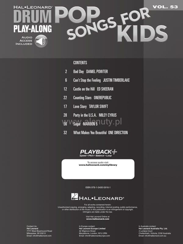Drum Play-Along Volume 53: Pop Songs for Kids (+ audio online) - nuty na perkusję dla dzieci