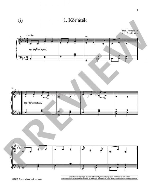 Publikacja zawiera kolekcję 25 aranżacji na fortepian solo tradycyjnych wschodnioeuropejskich melodii i piosenek. Autor "Argentinian Tango" i "Folk Tunes for Accordion", Pete Rosser, zapewnia obszerne notatki na temat wszystkich omawianych stylów. Tomowi towarzyszy płyta CD z nagraniem wszystkich melodii w wykonaniu Pete'a. Niemieckie i francuskie tłumaczenia wszystkich tekstów są dostępne do pobrania w formacie pdf ze strony internetowej Schott Music. Nuty przeznaczone dla średnio zaawansowanych i zaawansowanych muzyków.