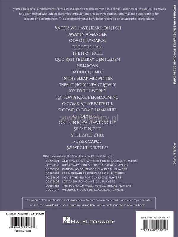 Tytuł: Favorite Christmas Carols for Classical Players: Violin and Piano (+ audio online)