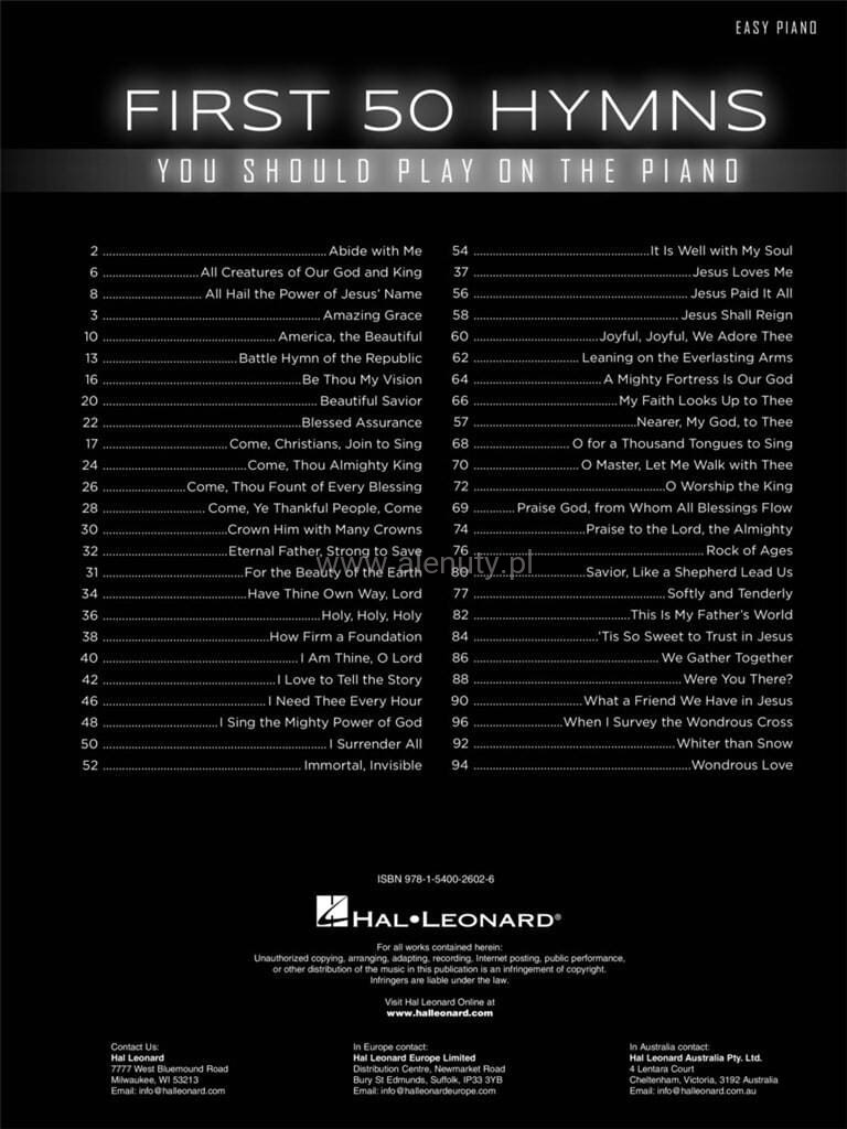 First 50 Hymns You Should Play on Piano - nuty na fortepian dla początkujących