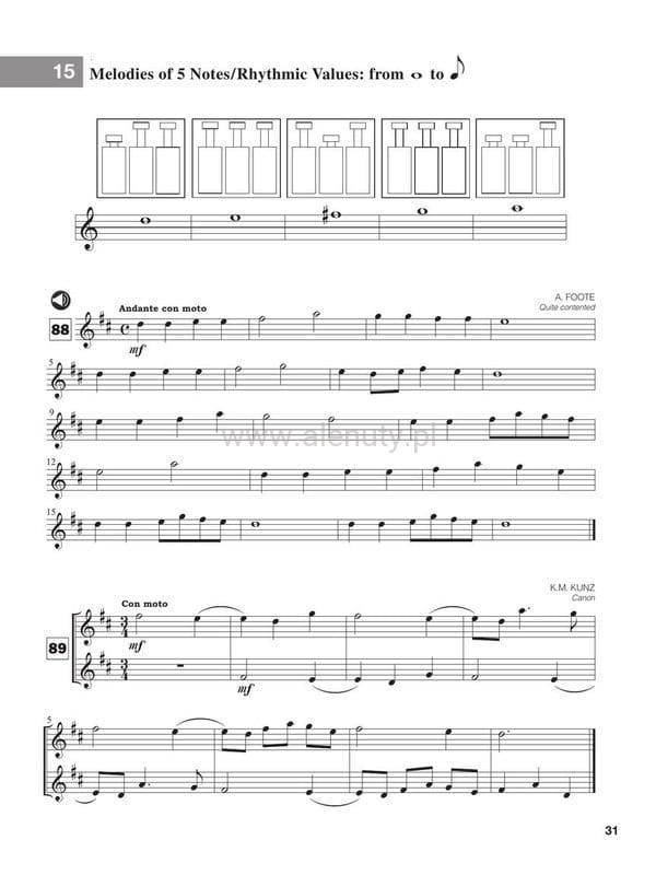 Podręcznik oferuje również proste akompaniamenty fortepianowe, umożliwiając uczniom doświadczenie wspólnego muzykowania od samego początku. Dodatkowo, wybrane utwory posiadają drugą partię instrumentalną jako akompaniament, co otwiera możliwość nowych wykonań.
