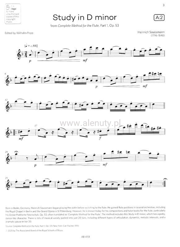 Study in D minor: from Complete Method for the Flute, Part 1, Op. 53 [Heinrich Soussmann]