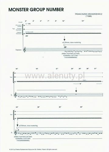 Franciszek Araszkiewicz: Monster Group Number na sopran solo i elektronikę ( + płyta CD) - nuty na głos i instrumenty elektroniczne