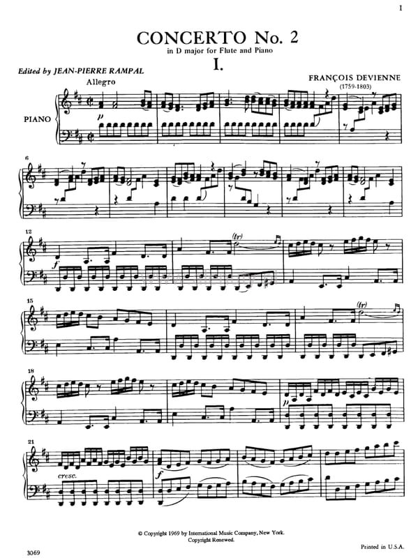 Francois Devienne: Concerto No. 2 in D major for Flute and Piano - Jean-Pierre Rampal - koncert fletowy nr 2 D-dur - nuty na flet poprzeczny i fortepian