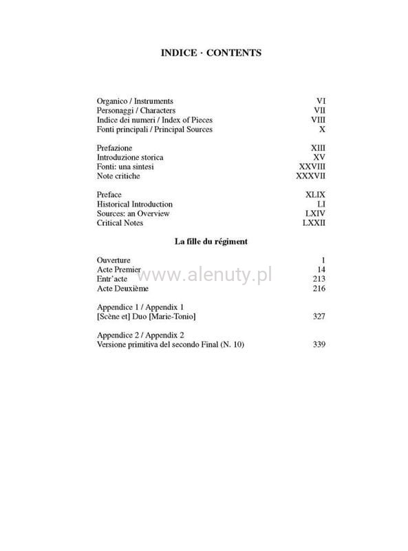Publikacja zawiera nuty do Opery Gaetano Donizetti "Córka pułku" opracowane na głos, chór i fortepian. Wydanie w formie partytury wokalnej z francuskim tekstem, przeznaczone dla zaawansowanych muzyków.