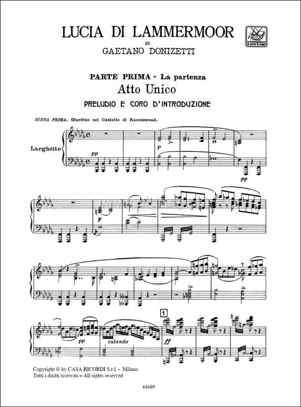 Gaetano Donizetti: Lucia di Lammermoor - Łucja z Lammermooru - opera - nuty na głos, chór i fortepian