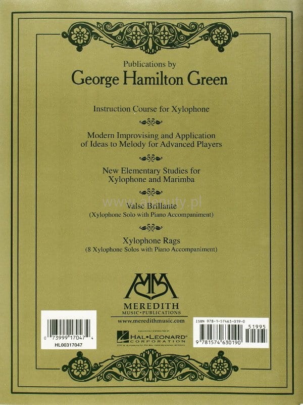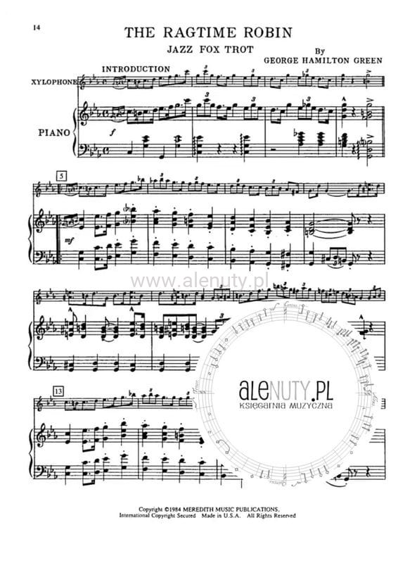 Wspaniała kolekcja 8 oryginalnych solówek z akompaniamentem fortepianowym mistrza muzyki ragtime na ksylofon. Dodatkowo w książce zawarte są informacje o stylu ragtime oraz dyskografia muzyki Georga Hamiltona Greena.