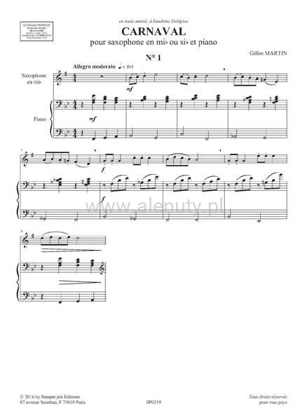 Gilles Martin: Carnaval pour saxophone en mib ou sib et piano - nuty na saksofon altowy lub tenorowy i fortepian