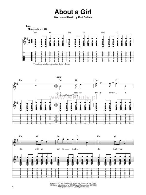Ta książka z dźwiękiem online zawiera 10 kompletnych piosenek w standardowym zapisie nutowym i tabulaturowym, w tym: About a Girl - Babe, I'm Gonna Leave You - Breaking the Girl - Free Fallin' - Good Riddance (Time of Your Life) - I'm Yours - Norwegian Wood (This Bird Has Flown) - The Scientist - Tears in Heaven - Wonderwall. Cena tej książki obejmuje dostęp do ścieżek audio online, do pobrania lub przesyłania strumieniowego, przy użyciu unikalnego kodu. Dźwięk zawiera PLAYBACK+, wielofunkcyjny odtwarzacz audio, który umożliwia spowolnienie dźwięku bez zmiany wysokości, ustawienie punktów pętli, zmianę klawiszy, przesuwanie w lewo lub w prawo.