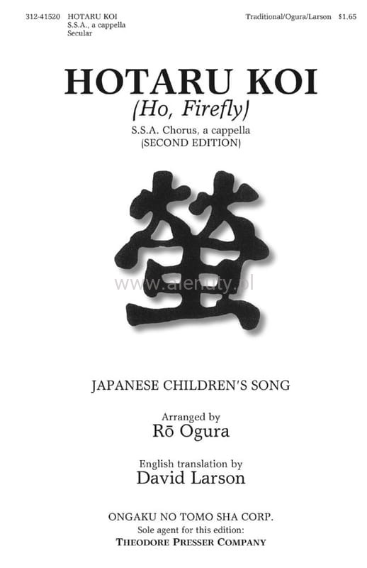 Hotaru Koi (Ho Firefly) for SSA and Piano - Ro Ogura - tradycyjna japońska piosenka dziecięca - nuty na chór żeński i fortepian