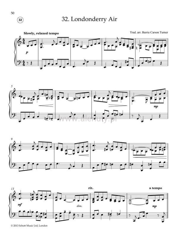 Publikacja prezentuje kolekcję pięknych 32 utworów na fortepian solo zaczerpniętych z bogatej tradycji irlandzkiej muzyki ludowej. Doświadczony autor i aranżer Barrie Carson-Turner zapewnia notatki do wszystkich utworów, wyjaśniając ich tło i historię. Niemieckie i francuskie tłumaczenia wszystkich tekstów są dostępne do pobrania w formacie pdf ze strony internetowej Schott Music. Książka jest częścią serii World Music, która obejmuje również muzykę z Anglii, Walii, Szkocji, Europy Wschodniej, Ameryki, Argentyny, Indii, Chin i Korei. Nuty przeznaczone dla średnio zaawansowanych i zaawansowanych muzyków.