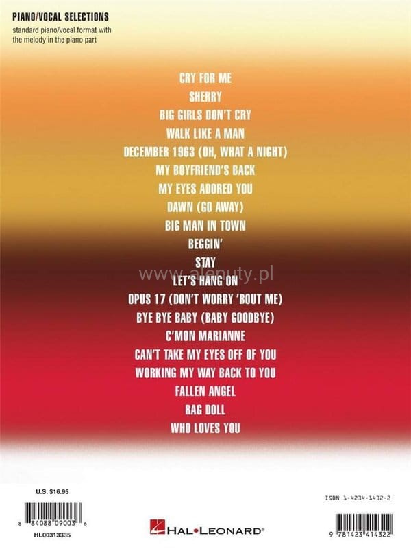 Publikacja zawiera 20 utworów wokalnych z broadwayowskiego musicalu o Rock and Roll Hall of Famers The Four Seasons. Jest to opowieść o tym, jak grupa chłopaków pracujących fizycznie stała się największą sensacją amerykańskiego popu wszechczasów, sprzedając ponad 175 milionów płyt na całym świecie. Nuty opracowane na fortepian, głos oraz gitarę dla średnio zaawansowanych.