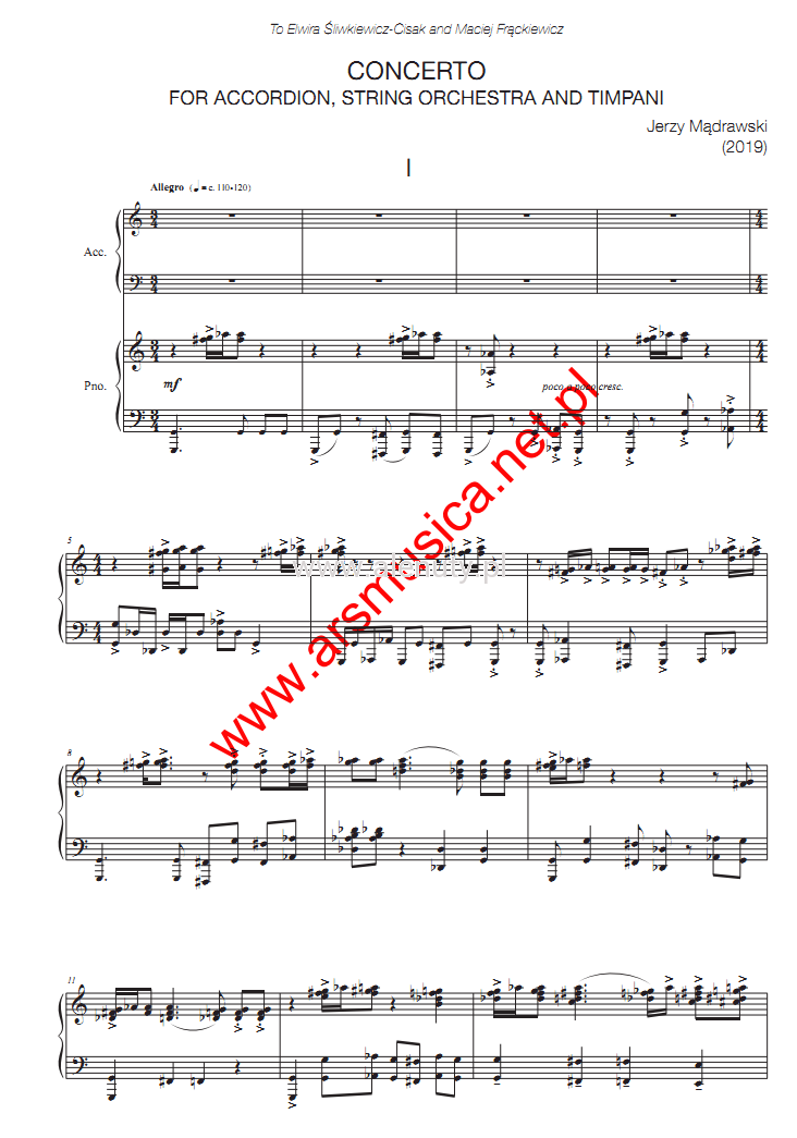 Jerzy Mądrawski: Concerto na akordeon, orkiestrę smyczkową i kotły - wyciąg fortepianowy