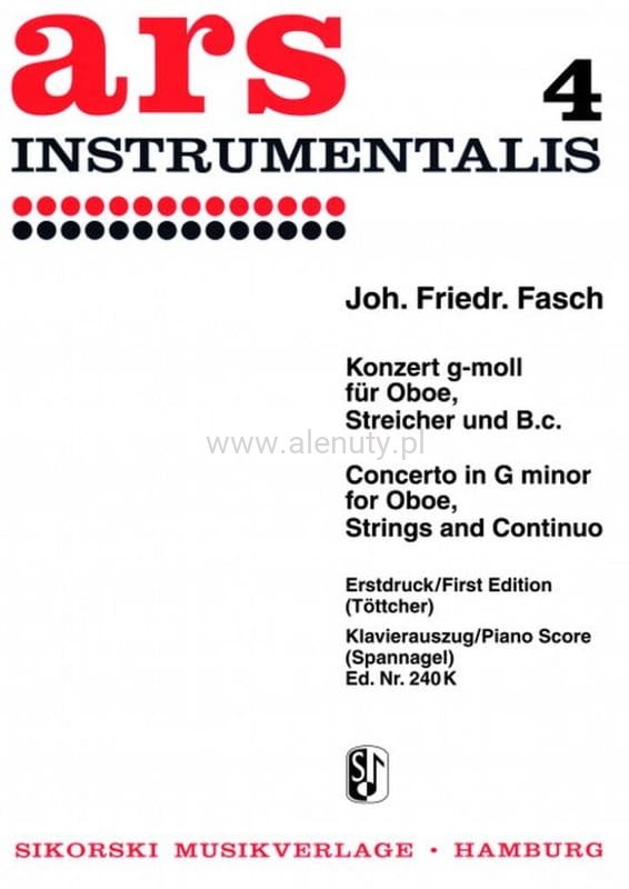 Aranżacja koncertu Fascha na obój, smyczki i kontinuum, z fortepianową redukcją oryginalnego akompaniamentu, pod redakcją Hermanna Tottchera.