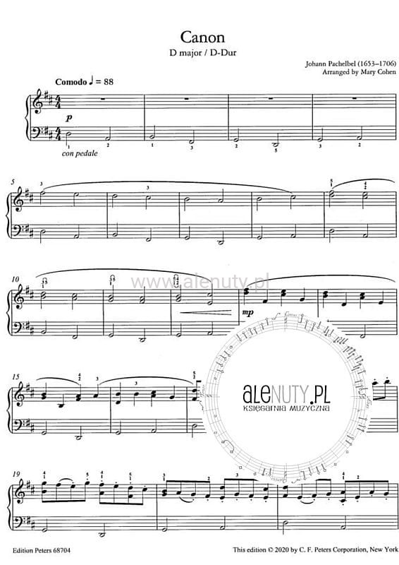 Johann Pachelbel: Canon in D major - kanon D-dur - nuty na fortepian