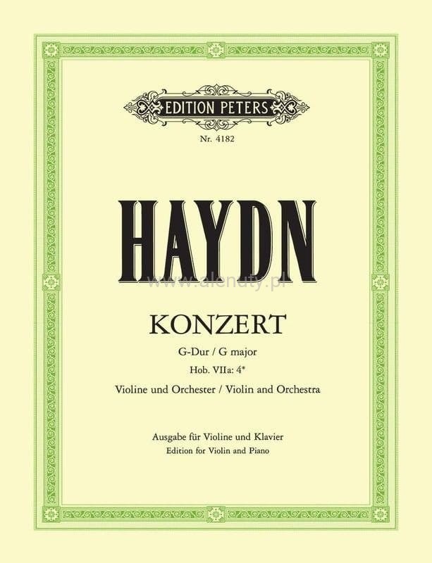 Koncerty skrzypcowe Haydna są popularnymi utworami, ponieważ zazwyczaj nie są zbyt trudne technicznie, ale muzycznie bardzo treściwe. Jednocześnie wirtuozowskie pasaże są świetną motywacją dla każdego skrzypka. Publikacja zawiera Koncert G-dur (Hob. VIIa:4) w opracowaniu na skrzypce z fortepianem. Wydanie obejmuje zapis partytury oraz głosy instrumentalne. Nuty dla średnio zaawansowanych muzyków.