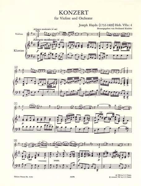 Joseph Haydn: Konzert G-dur Hob. VIIa:4 - koncert skrzypcowy - Ferdinand Kuchler - nuty na skrzypce i fortepian