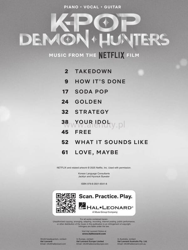 KPop Demon Hunters (PVG) - melodia, nuty na fortepian, akordy gitarowe i słowa piosenek z filmu Netflix K-popowe łowczynie demonów