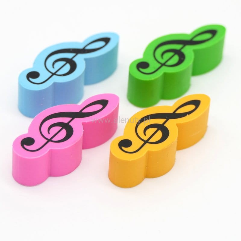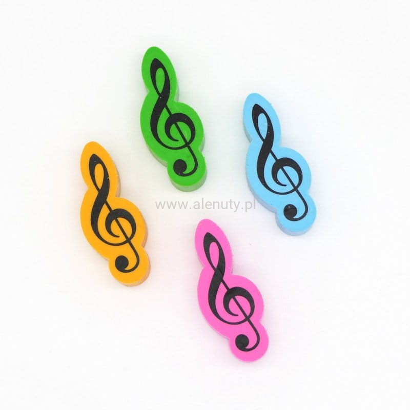 Kolorowa gumka do mazania klucz wiolinowy 2 cm - komplet 4 sztuk