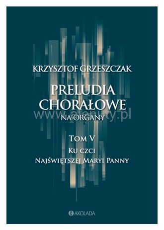 Publikacja zawierająca zbiór preludiów chorałowych autorstwa Krzysztofa Grzeszczaka opracowanych na organy z pedałem. Kompozytor, będący także praktykującym organistą, odnalazł inspirację w samym instrumencie oraz technice gry, co zaowocowało bogatym zbiorem preludiów o różnorodnym charakterze. Tom V zawiera 31 preludiów chorałowych na temat pieśni ku czci Najświętszej Maryi Panny. Każde z preludiów zostało oparte na dogłębnej znajomości warstwy tekstowej chorału, co pozwoliło Grzeszczakowi przekazać treść pieśni w sposób adekwatny i inspirujący dla słuchacza. W swoich dziełach kompozytor wykorzystuje szeroki zakres środków, sięgając zarówno do tradycyjnej faktury polifonicznej, bogatego kontrapunktu, jak i nowoczesnych technik kompozytorskich. Nuty przeznaczone dla średnio zaawansowanych muzyków.