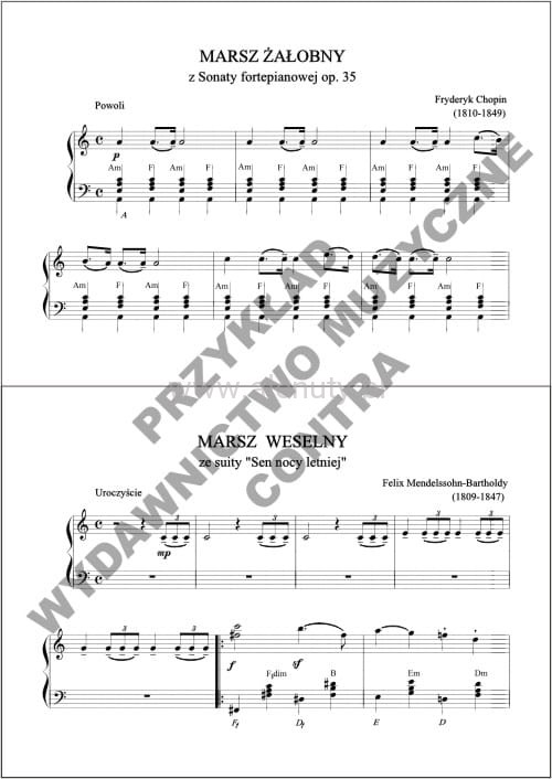 Kolekcja najpopularniejszych marszów w prostym opracowaniu nutowym i akordowym na akordeon.